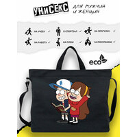Сумка шоппер y2k через плечо Гравити Фолз Диппер и Мейбл, черный