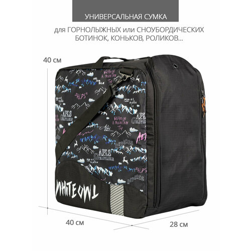 Купить Сумка спортивная для лыжных ботинок/коньков, White Owl, модель FB-012, черный/принт, 43х40х28 см с доставкой по всей России.