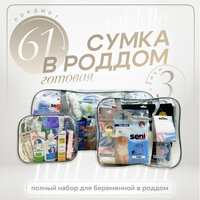 Купить Сумка в роддом готовая для мамы и малыша с наполнением Full mom Middle, 61 предмет, прозрачная с доставкой по всей России.