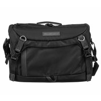 Сверху сумка закрывается клапаном на 2 пряжках-фастексах. В клапане сделана прорезь на молнии для быстрого извлечения камеры при необходимости. Для различных вариантов ношения предусмотрены: верхняя ручка, плечевой ремень с широкой накладкой и прорезь на тыльной стороне сумки для крепления на ручке сумки-тележки. Сумка комплектуется защитным чехлом от дождя.