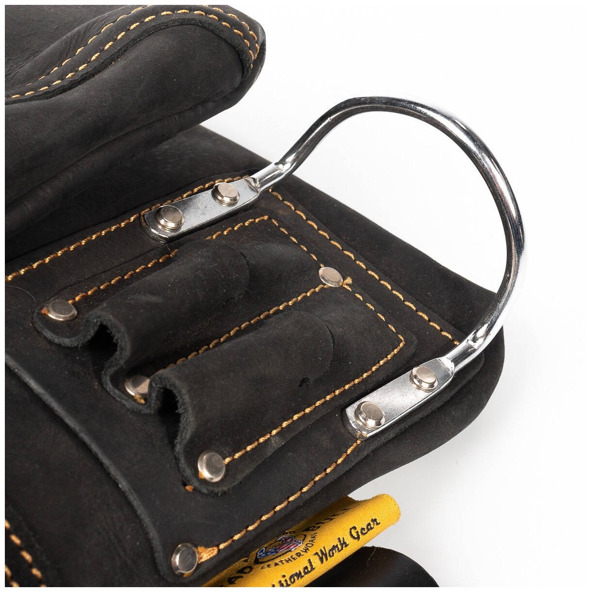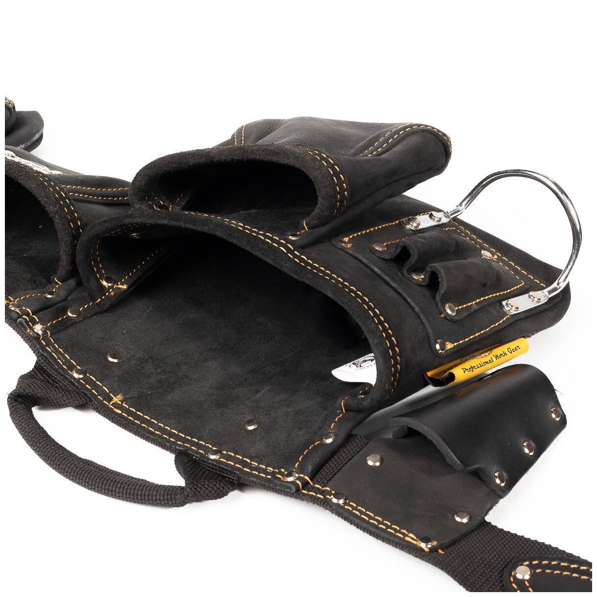 - 2 симметричных больших подсумника с 5 отделениями и 1 стальным держателем для молотка каждый и центральная сумка-карман