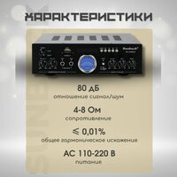 Sunbuck усилитель AV-505AT, Bluetooth 5.0, 27 Вт RMS, караоке, FM-радио, USB, Hi-Fi, VU-метр: сравнение цен, характеристики, фото, актуальное наличие и цены.