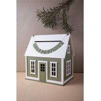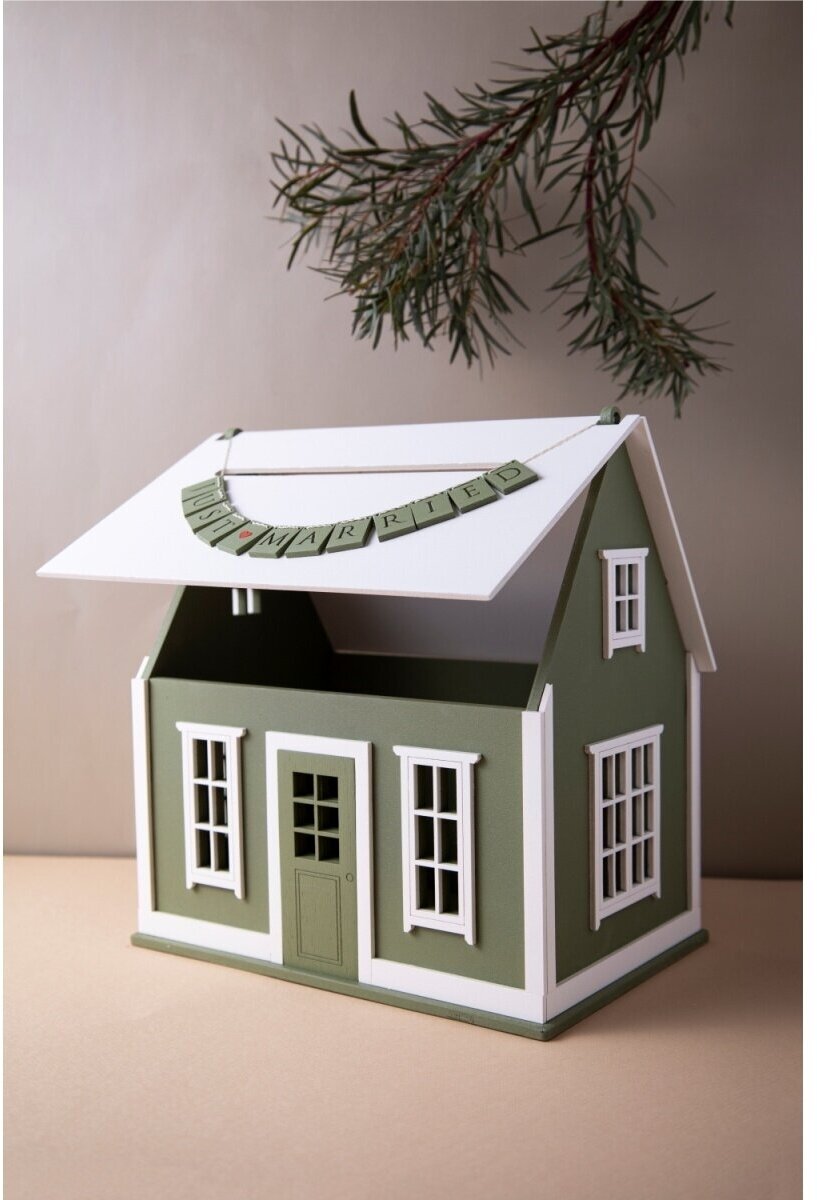 Домик казна для денег украсит вашу свадьбу и в дальнейшем станет приятным и уютным дополнением в вашем доме. Свадебный банк с прорезью для конвертов, в такой домик помещается более 150 конвертов. Размер отверстия для конвертов подходит для любых конвертов и открыток. Крыша приподнимается, чтобы можно было легко достать денежный подарок после праздника. На крыше домика флажки с надписью "Just married", которые легко можно снять. Такой сундук для денег на свадьбу подойдет не только как элемент свадебного декора, но и в последствии может использоваться как семейная копилка для денег, символизирующая цель накоплений Семейный домик - это актуальная альтернативна коробочке для конвертов. Размер свадебного сундучка в таком исполнении 24 х 25 х 15 см