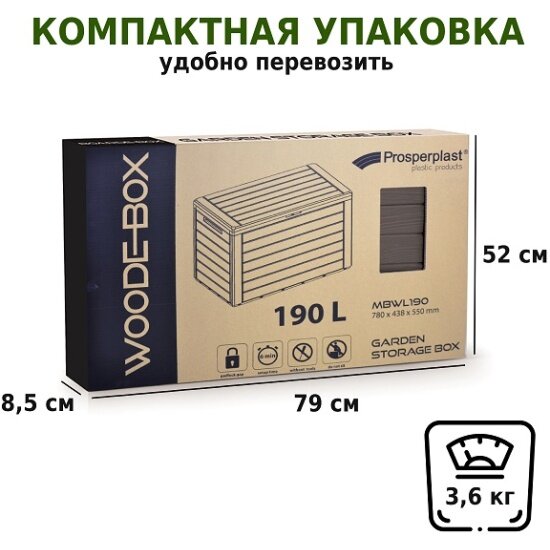 Выбирая садовый сундук Prosperplast Woodebox 190, вы получаете стильное и функциональное решение для хранения вещей в саду, которое обеспечит сохранность ваших вещей и удобство использования.
