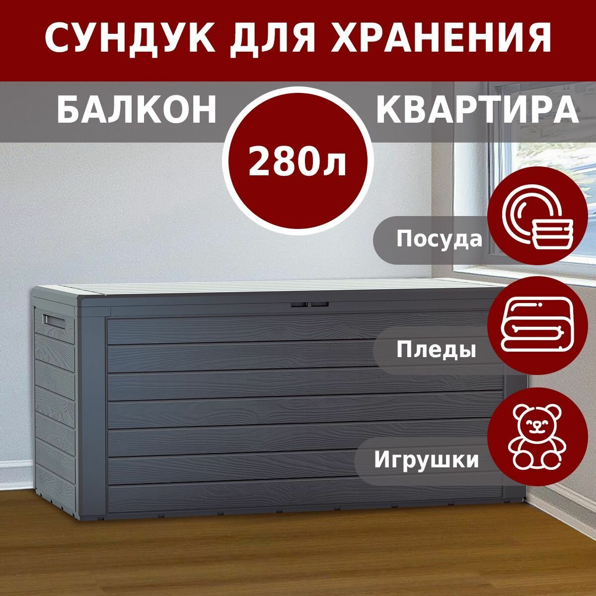 Купить Сундук садовый для хранения вещей Prosperplast Woodebox 280 л, антрацит с доставкой по всей России. Сундук садовый для хранения вещей Prosperplast Woodebox 280 л, антрацит: сравнение цен, характеристики, фото, актуальное наличие и цены.
