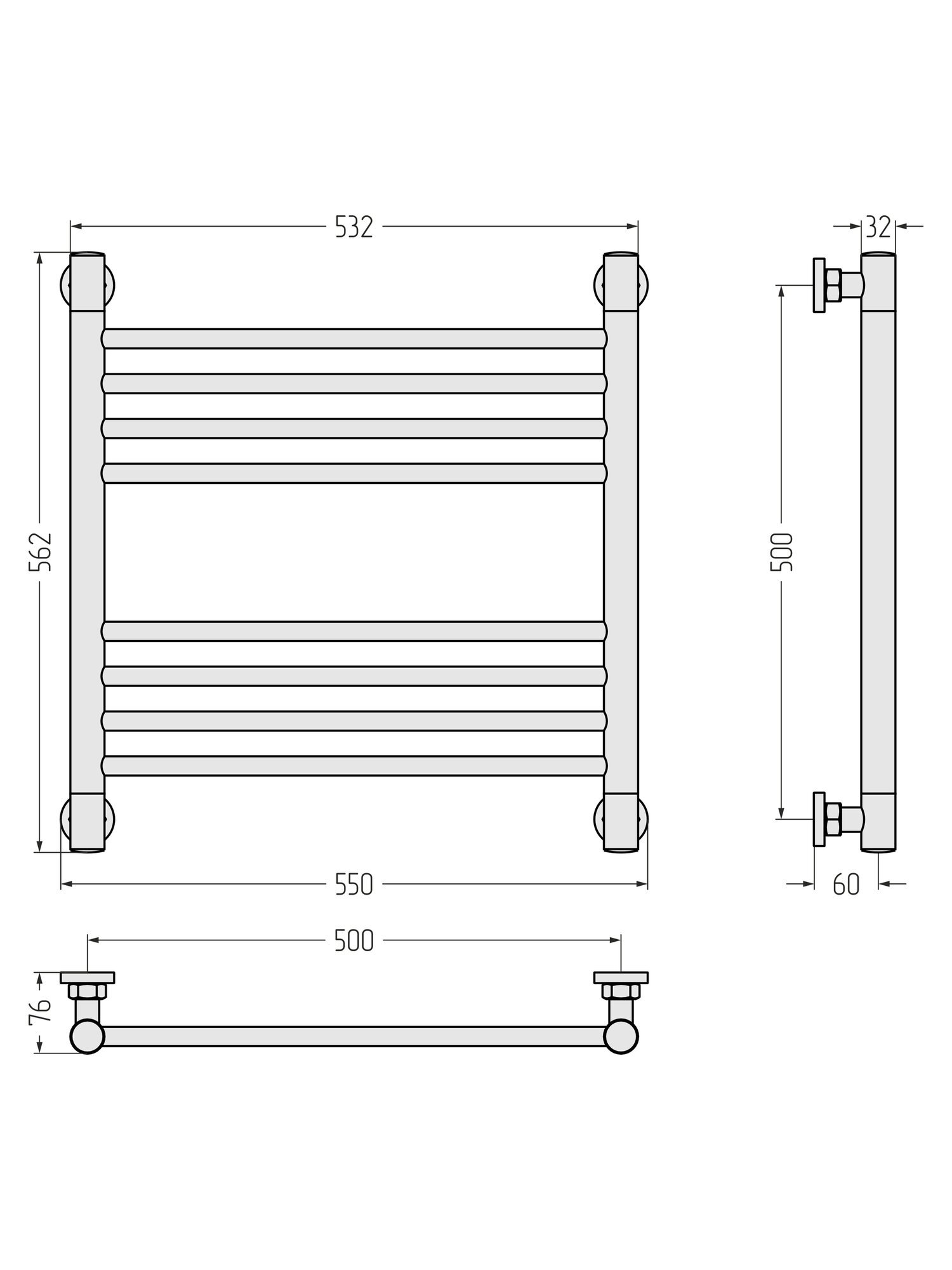 СУНЕРЖА Богема+ прямая Полотенцесушитель 500х500 (8 ступ.) черный матовый, унив. под. 3/4"