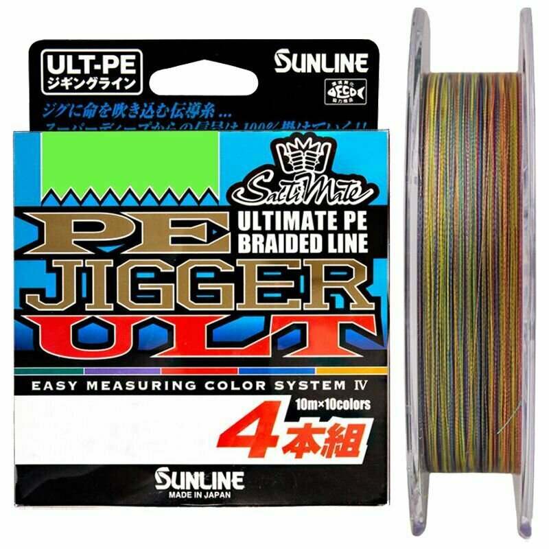 Плетеные шнуры Sunline – это нитки высочайшего класса с очень высокими эксплуатационными характеристиками. При их изготовлении используются самые новаторские технологии и материалы, что позволяет компании оставаться безусловным мировым лидером во всех ценовых категориях. Условно плетенки Sunline можно разделить на несколько категорий, прежде всего ориентируясь по такому важному критерию как используемые материалы: 1. SUPER PE – высокомодульный полиэтилен, который используется в плетенках эконом уровня. Скользкий и весьма прочный он обладает нулевой растяжимостью, что обеспечивает прекрасную чувствительность. 2. HG PE (High Grade PE) - как видно из названия – это полиэтилен самого высокого уровня. Его волокно на 1/5 прочнее SUPER PE, а, следовательно, из такого материала можно создавать более прочные и в тоже время более тонкие нитки. Кроме того HG PE обладает малым удельным весом и большой гладкостью, что благоприятно сказывается на дальнобойности.3. HG PE Type 2 – гибридный материал, микс высокомодульного полиэтилена полиэстера. Из него, прежде всего, изготавливаются шнуры, во главу угла при эксплуатации которых ставится максимально дальний заброс и минимальное трение об воду. Sunline PE Jigger ULT 4 — четырехжильная версия нового шнура PE Jigger от Sunline. Разработка и внедрение нового материала Ultimate PE, а также технологии обработки поверхности SSP (Smooth Surface Processing) позволили специалистам Sunline вывести производство четырехжильных шнуров на качественно новый уровень, значительно повысив рабочие характеристики плетенки. PE Jigger ULT 4 обладает высокими кастинговыми характеристиками, при этом он очень информативен, так как практически нерастяжим. Новая система маркировки EMCS IV с несколькими базовыми цветами позволяет эффективно контролировать дальность заброса и глубину проводки. Sunline PE Jigger ULT 4 поставляется в размотке по 200 м в диаметрах от #0,6 до #3. Важным обстоятельством является появление в линейке нового типоразмера шнура #1,7, введенного в размерный ряд Sunline в 2016 году. Нитки этого диаметра значительно прочнее, чем #1,5, при этом дальность заброса их выше, чем у плетенок с диаметром #2.