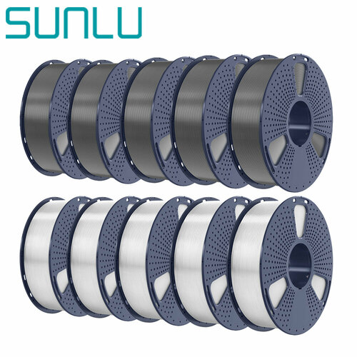 SUNLU PETG Filament, Gray+Transparent, 1.75mm,10PCS,13KG, with detachable spool.enhanced toughness and is suitable for 3D printers: сравнение цен, характеристики, фото, актуальное наличие и цены.
