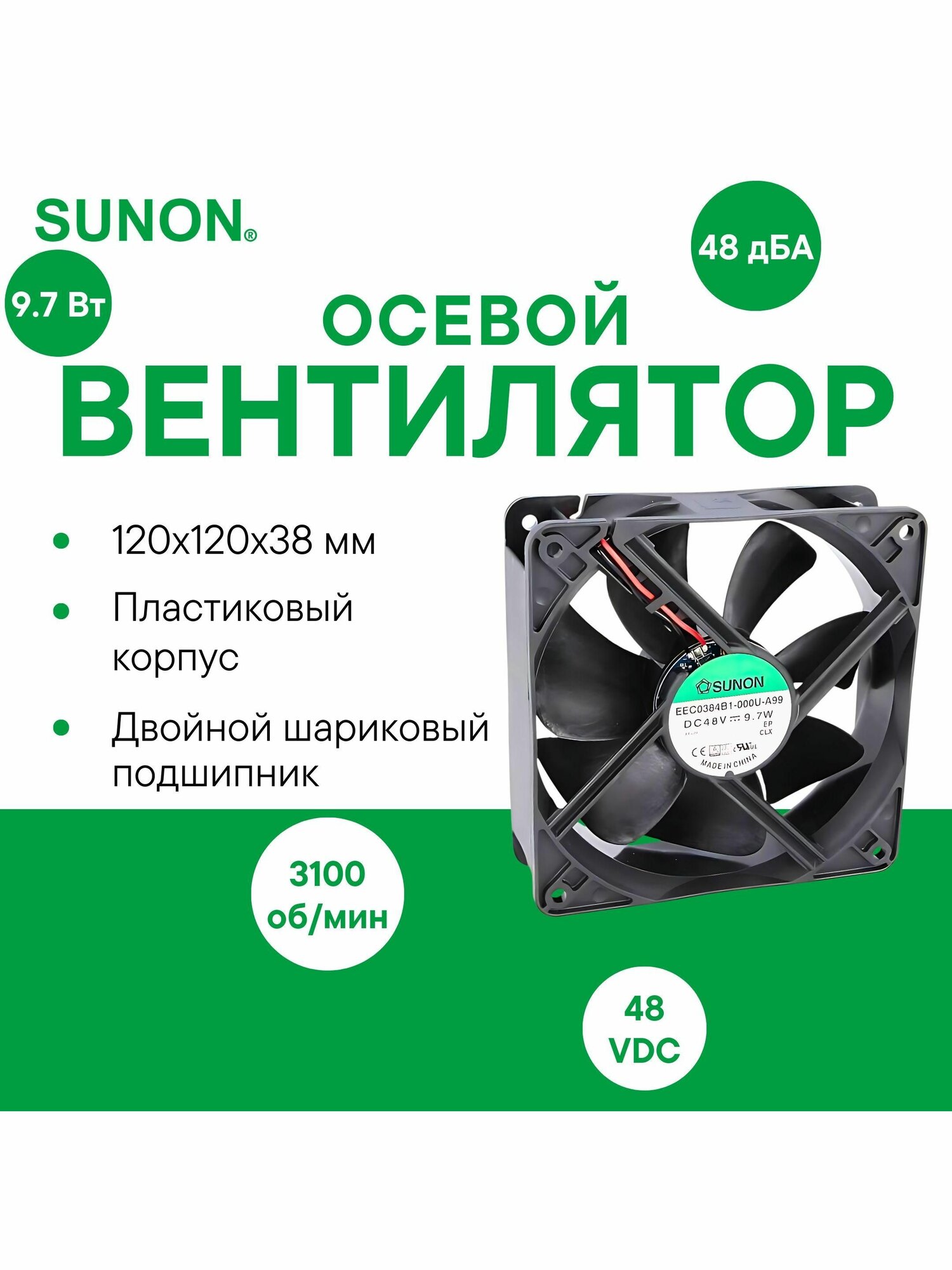 SUNON EEC0384B1-000U-A99 осевой вентилятор с двойным шариковым подшипником, 120х120х38мм, 48VDC, 9.7Вт, 138CFM, 3100об/мин, 2 провода, расчетный срок службы 70000 часов: сравнение цен, характеристики, фото, актуальное наличие и цены.