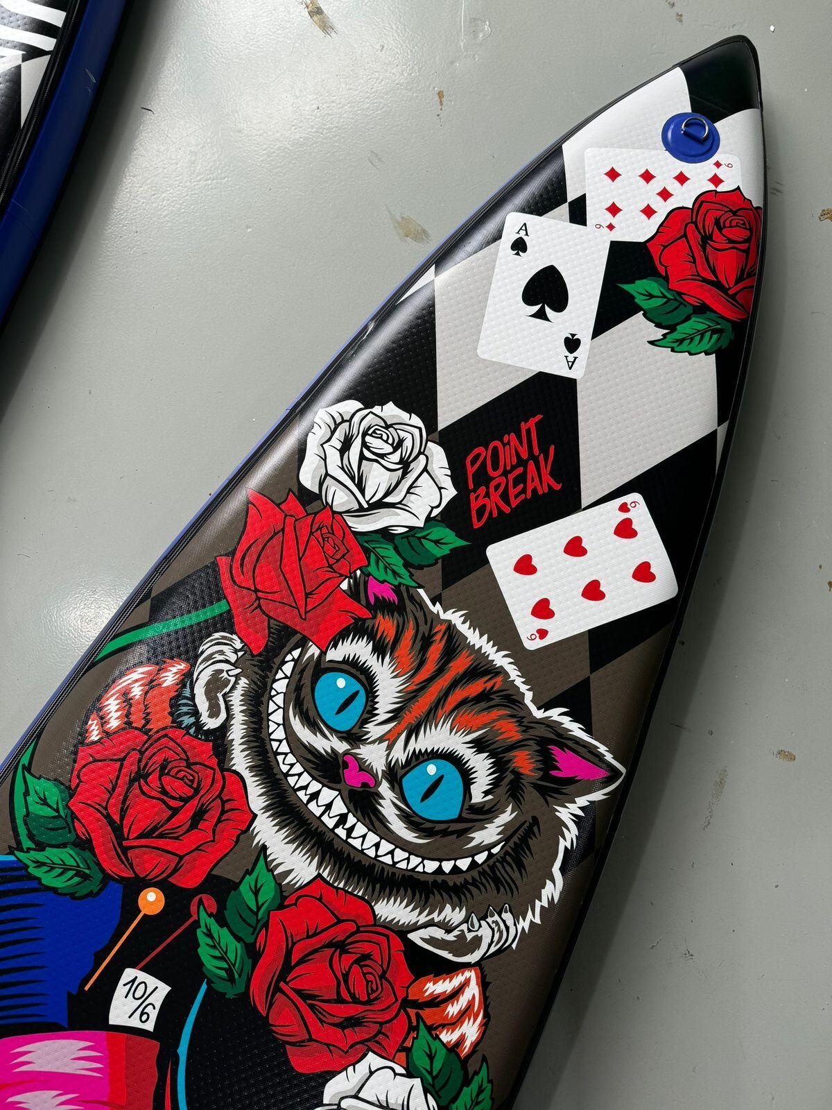 - нос- шило- выполнен по специальной запатентованной технологии - пронзает любую волну, не захватывая воду на палубу, райдер уверенно чувствует себя в положении стоя на любом водоеме, в любых погодных условиях