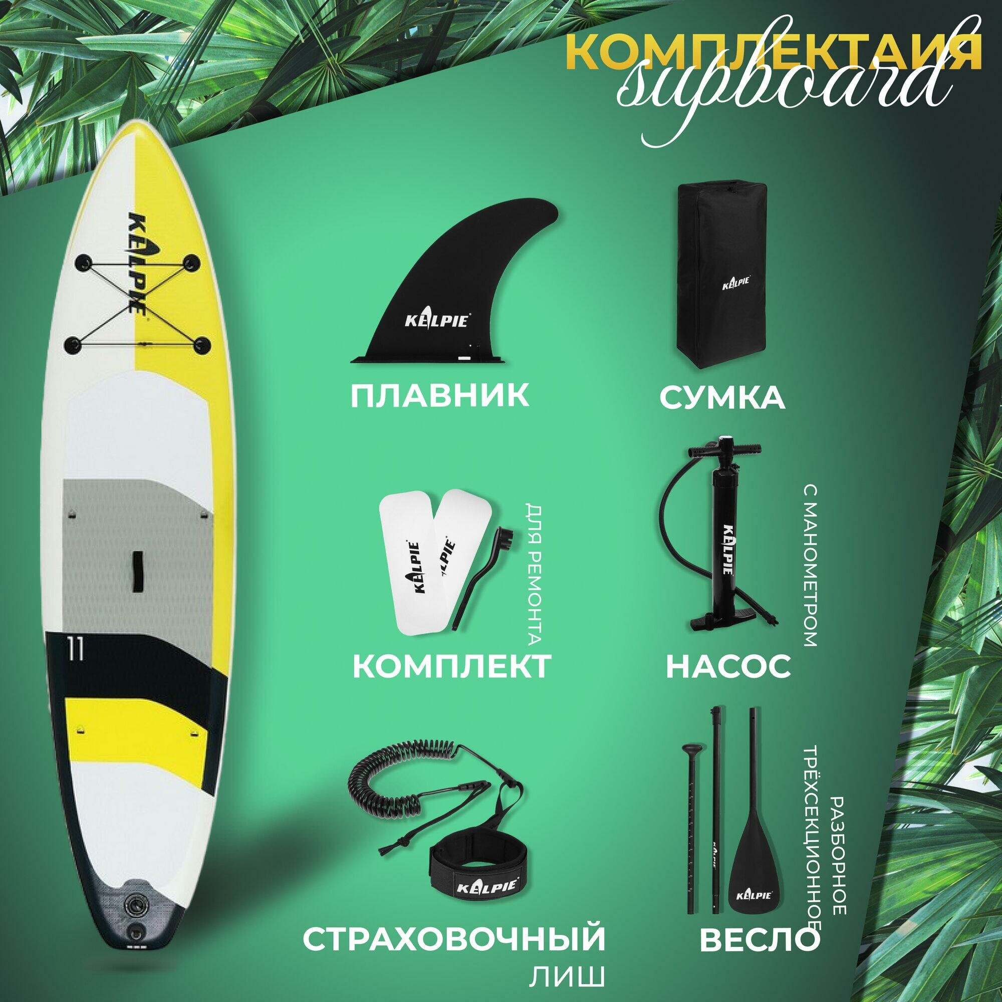 SUP-доска KELPIE «TOURING «, надувная, 11», размер 335 х 80 х 15 см, цвет белый, желтый, серый: сравнение цен, характеристики, фото, актуальное наличие и цены.