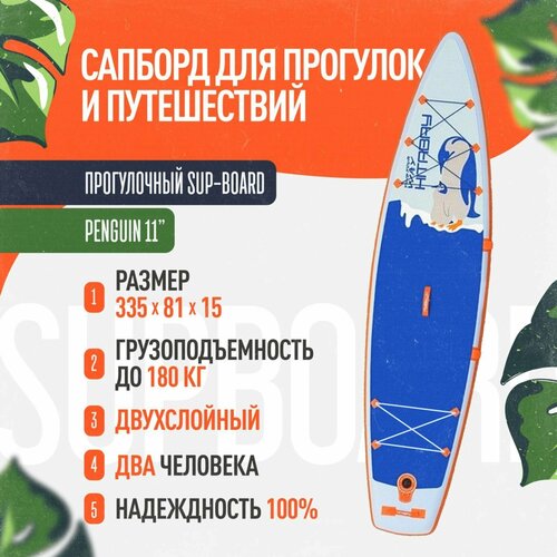 Купить SUP-доска Pinguin 11’0″ надувная, двухслойная. Сапборд устойчивый с полным комплектом, 335x81x15 см с доставкой по всей России.