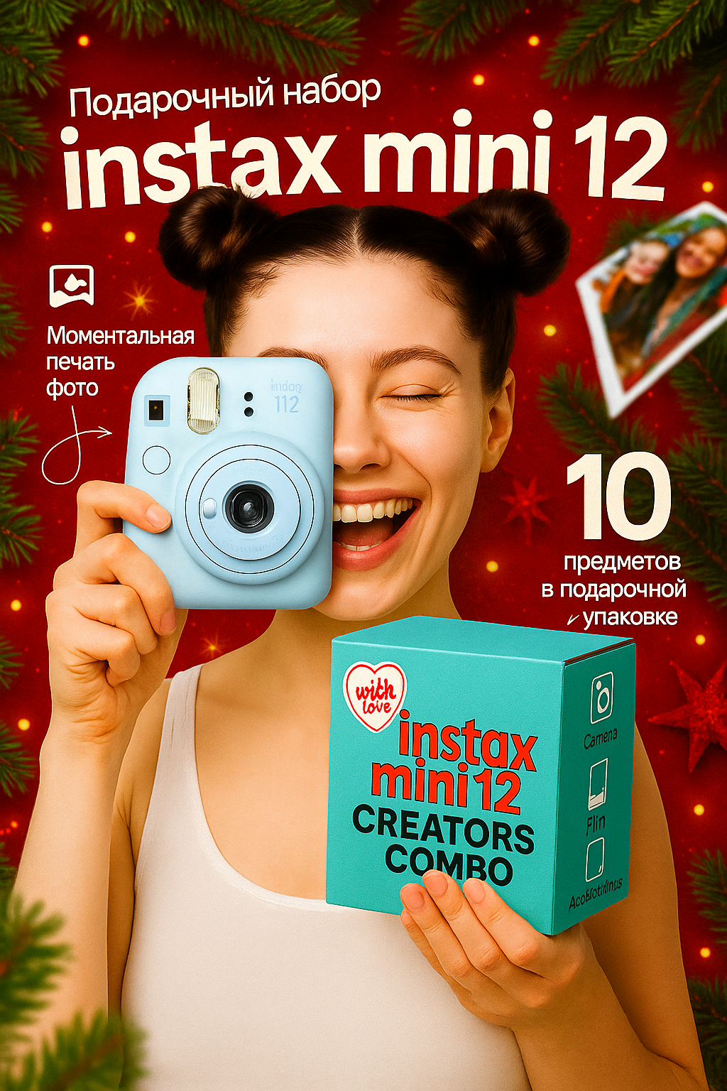 | Комплектация | фотоаппарат моментальной печати, чехол для фотоаппарата, фотобумага, фотоальбом. |