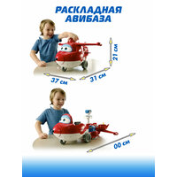 Большой игровой набор Взлётная база Джетта! Огромный самолёт Джетт с большими вращающимися колёсами. На голове Джетта есть ручка, за которую можно держать игрушку и имитировать полёт в воздухе. Любимый герой может летать и ездить по ровной поверхности, но это ещё не всё! Джетт трансформируется в авиабазу, в которой 4 взлетно-посадочных полосы и 2 стартовые площадки. Поставь мини-фигурку Джетта на стартовую позицию, поверни винт, чтобы отправить Джетта на задание! При нажатии на красную кнопку, нос Джетта раскрывается и превращается в дополнительную полосу для запуска. Аэропорт можно сложить обратно в большую фигурку Джетта и играть им, как огромным самолётом. Набор включает в себя 1 мини-фигурку Джетта.