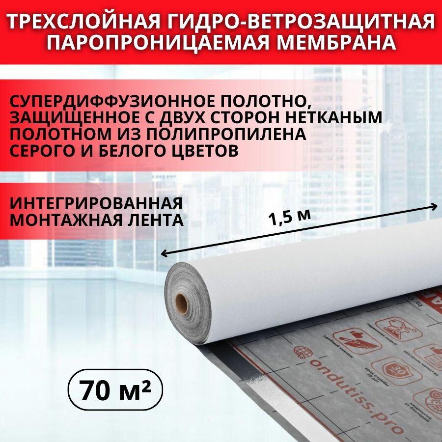 Супердиффузионная мембрана ONDUTISS SMART AM 70м2 / Гидро-ветрозащитная паропроницаемая мембрана Ондутис Смарт Термо с интегрированной лентой: сравнение цен, характеристики, фото, актуальное наличие и цены.