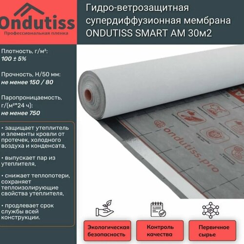 Супердифузная мембрана ONDUTISS SMART AM 30 м2 / Гидро-ветрозащитная мембрана Ондутис Смарт АМ: сравнение цен, характеристики, фото, актуальное наличие и цены.