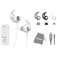 •Наушники с коротким кабелем •Ресивер B01 •Три комплекта ушных фиксаторов и резиновых вставок разного размера •Тканевый мешочек для хранения •USB кабель (для зарядки) Ресивер: •Имеет прищепку, с помощью которой его можно закрепить на край одежды. •Габариты 47*22*10 мм (без учёта прищепки на одежду) •Аудиовыход 3,5 мм •Можно использовать с другими проводными наушниками, •Вибрирует при входящем звонке. •Встроенные пресеты эквалайзера, переключаются длинным нажатием кнопки play/pause.