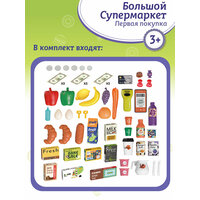 Игровой набор "Супермаркет" для игры в магазин обязательно понравится детям. В комплект входят: большой игрушечный прилавок с вывеской и полочками, кофейный аппарат, касса с игрушечным POS-терминалом и сканером, продуктовая корзинка, всевозможные продукты, а также игрушечная кредитная карта и игрушечные деньги. При проведении картой в POS-терминале и нажатии кнопки на сканере раздаётся звуковой сигнал и загорается световой индикатор. Эти особенности набора добавляют особую реалистичность игре. Игра развивает коммуникативные навыки, воображение, логику, мелкую моторику, а также тренирует навыки устного счета. Размер упаковки: 60х19х46см В комплекте: 65 предметов. Рекомендуемый возраст: от 3 лет