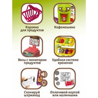 Игровой набор «Супермаркет» — это не просто игрушка, это целый мир, где дети могут представить себя покупателями, продавцами и даже владельцами собственного магазина. В комплекте есть всё необходимое для создания атмосферы настоящего магазина: яркие прилавки, разнообразные продукты, POS-терминал, весы, кофемашина, корзина для продуктов, сканер и даже игрушечная кредитная карта.