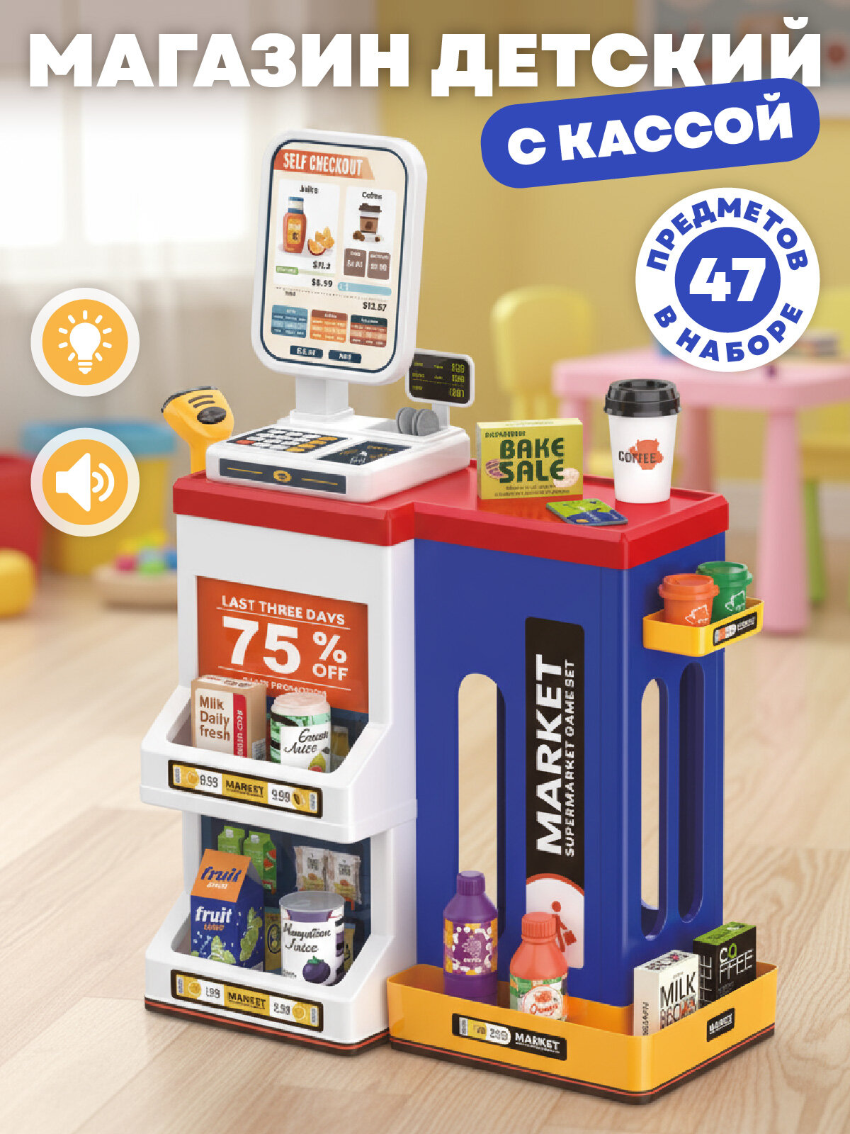 Купить Игровой набор Супермаркет Первая покупка, магазин игрушечный, касса детская, 47 предметов, свет, звук, JB0213143 с доставкой по всей России. Игровой набор Супермаркет Первая покупка, магазин игрушечный, касса детская, 47 предметов, свет, звук, JB0213143: сравнение цен, характеристики, фото, актуальное наличие и цены.
