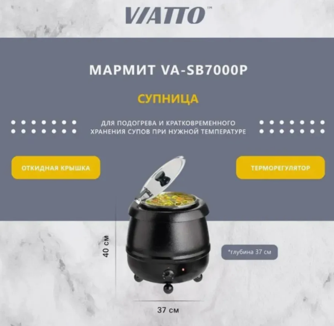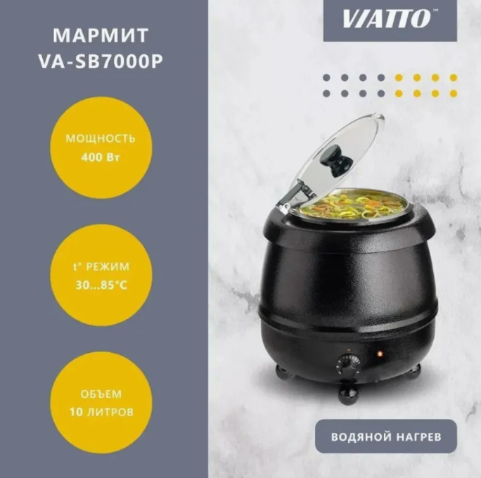 Супница Viatto Commercial (подогреватель супа) VA-SB7000P. Мармит с подогревом для первых блюд: сравнение цен, характеристики, фото, актуальное наличие и цены.