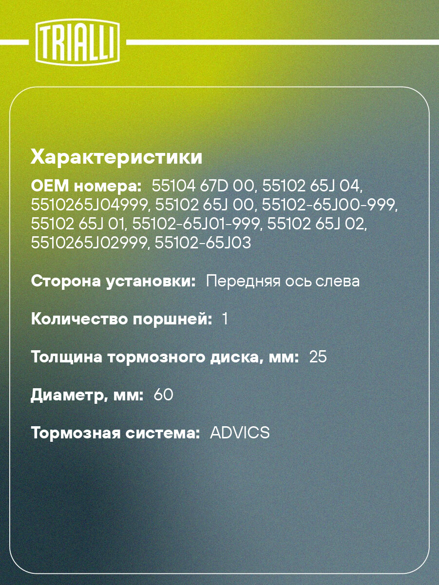 Суппорт тормозной для автомобилей Suzuki Grand Vitara (05-) передний левый d=60мм