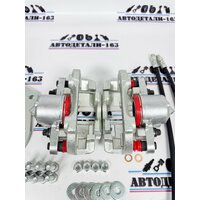 Суппорта можно установить на штатные тормозные диски 2121 диаметром 272 мм, под колёса R15-R16, либо на тормозные диски нового образца 21214-3501070-10 увеличенного диаметра 285 мм, под колёса R15-R16, данные диски одеваются снаружи ступицы. Ступица протачивается до Ф=168,5 -0,25 мм. Тормозные шланги от Газели/Волги задние 48 см.