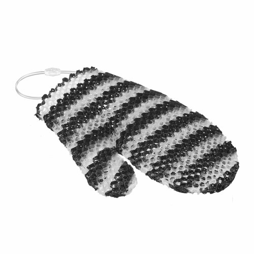 Мочалка для тела средней жёсткости. Белые экстрамягкие полоски чередуются с чёрными усиленной жёсткости.