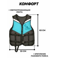 Преимущества этого жилета включают продуманную конструкцию, которая обеспечивает комфорт и свободу движений. Он оснащен регулируемыми ремнями, что позволяет легко подогнать его по фигуре. Это особенно важно при активных занятиях на воде, когда каждый элемент экипировки должен работать в гармонии с телом.