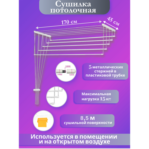 Купить Сушилка для белья 1.7 м настенно-потолочная «Лиана», 170×45 см, рабочая длина 8.5 м, белая с доставкой по всей России. Сушилка для белья 1.7 м настенно-потолочная «Лиана», 170×45 см, рабочая длина 8.5 м, белая: сравнение цен, характеристики, фото, актуальное наличие и цены.