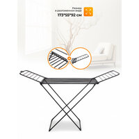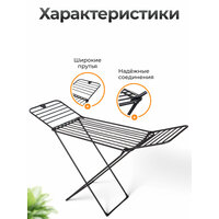 Сушилка имеет следующие размеры: высота - 92 см, ширина - 55 см, длина - 173 см. Рабочая длина прутьев составляет 180 см.