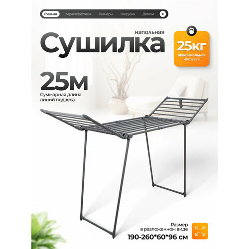 Сушилка для белья JOY HOME Титан, стальная, раздвижная, порошковая окраска, 25 м, нагрузка 25 кг, матово-серая: сравнение цен, характеристики, фото, актуальное наличие и цены.
