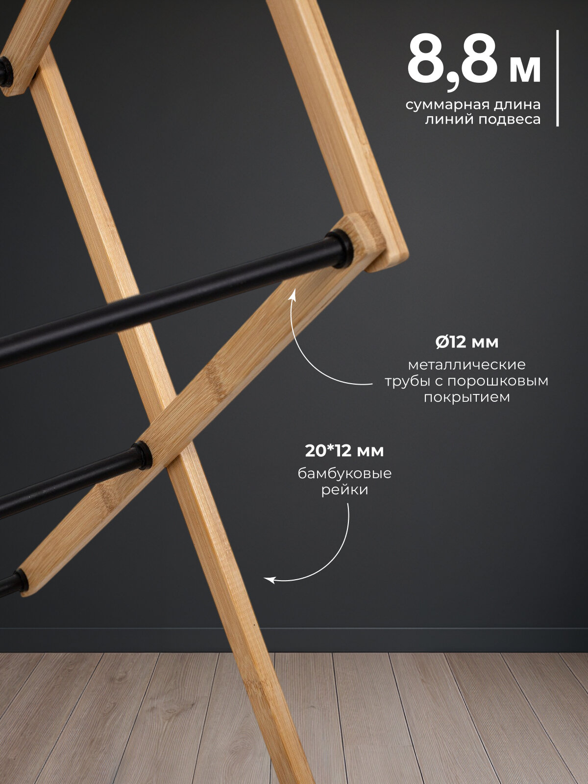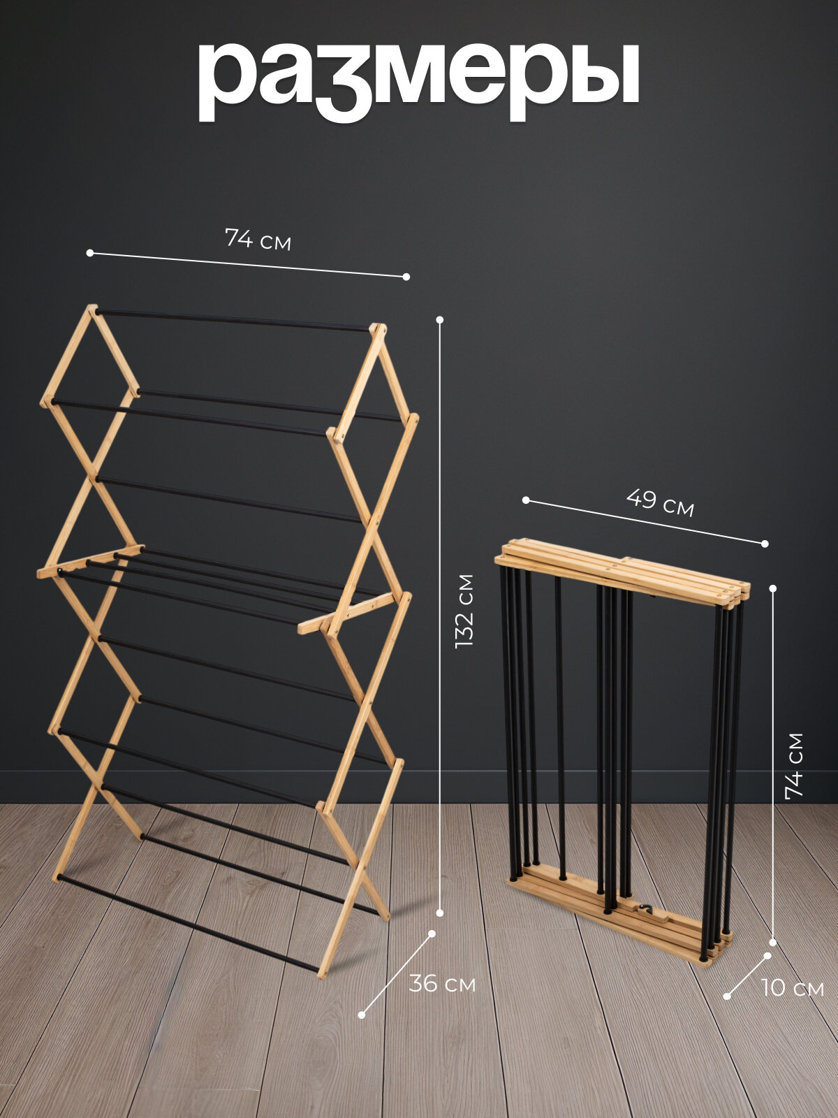 Сушилка для белья JOY HOME «Панда», бамбуковая, 74х36х132 см, полезная длина 8,8 м: сравнение цен, характеристики, фото, актуальное наличие и цены.