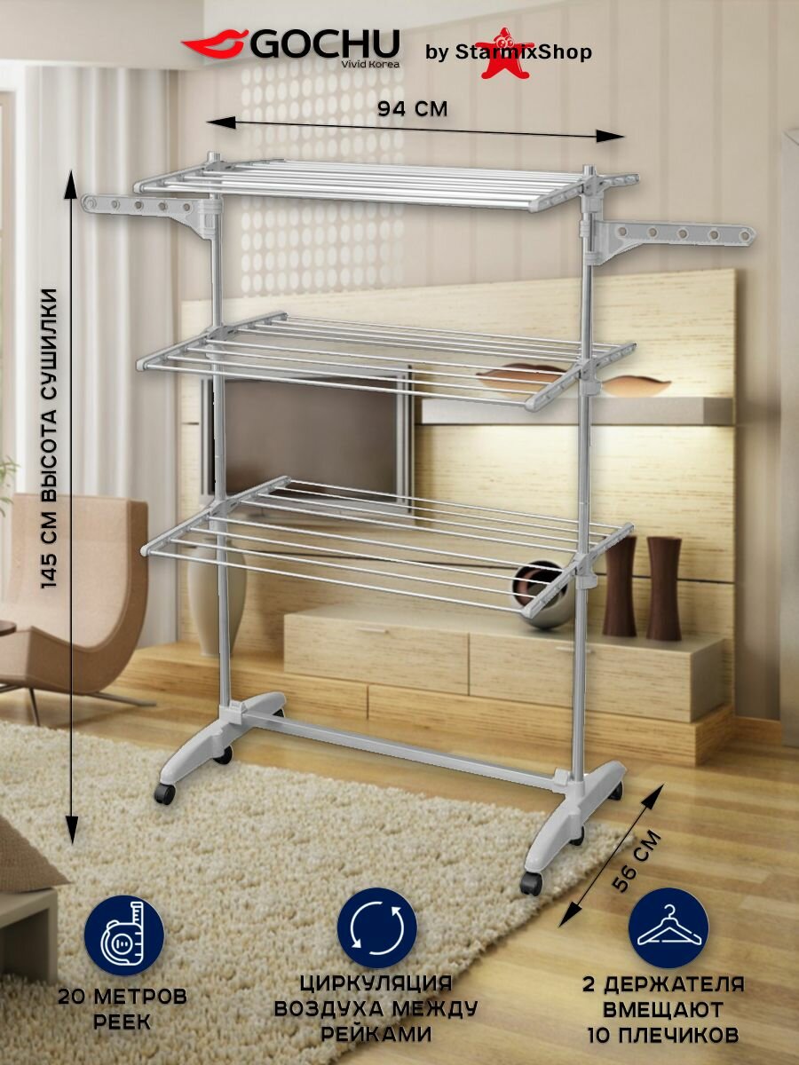 Многофункциональная сушилка трансформер для белья Gochu (All Mom 4) - это удобная и современная сушилка одежды, которая будет незаменимой помощницей в доме или квартире. Она компактная, универсальная и легко транспортируется на колесиках.