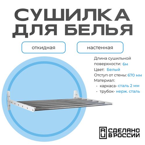 Настенная сушилка для белья 100 см на 6 рядов - это удобный и практичный аксессуар для дома. Она крепится на стену, что экономит место и делает ее использование более удобным. Сушилка имеет 6 рядов для развешивания белья, что позволяет сушить большое количество вещей одновременно. Материал трубок сушилки - нержавеющая сталь, что обеспечивает ее прочность и долговечность. Порошковая покраска защищает элементы сушилки от коррозии. Благодаря откидному механизму, сушилку легко использовать и хранить. Большой диаметр трубок 18 мм обеспечит отсутствие заломов на белье. Сушилка поставляется в разобранном виде.