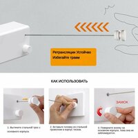 Сушилка оснащена двумя выдвижными тросами, каждый из которых имеет длину 4,2 метра и максимальную нагрузку до 15 кг, что делает её отличным вариантом для сушки одежды. Эта сушилка для белья настенная выдвижная позволит вам эффективно организовать пространство, избавляя от необходимости установки громоздких сушилок, а ее компактный дизайн делает её идеальной для городской квартиры.