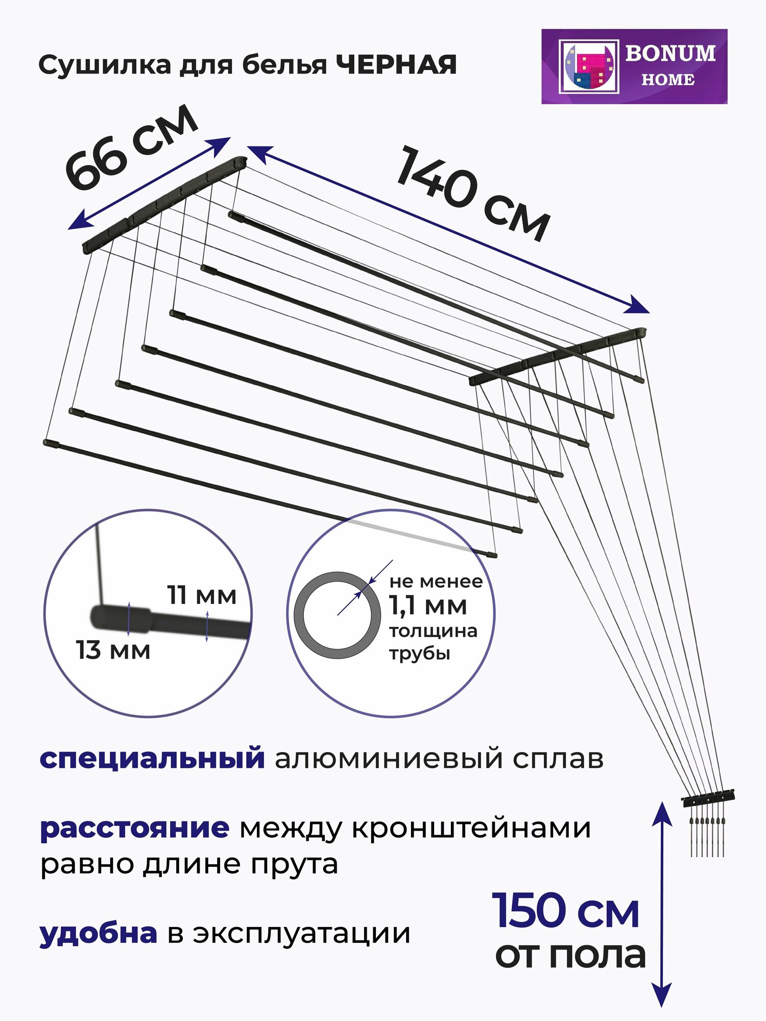 Сушилка для белья потолочная, черная 140см,7 прутьев, навесная, алюминиевая. Беларусь.: сравнение цен, характеристики, фото, актуальное наличие и цены.