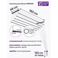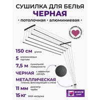 Сушилка для белья потолочная, навесная, алюминиевая в черном цвете с креплением на потолок с 5-ю или 7-ю цельными прутьями. Длинна прутьев 100см,110см,120см,130см,140см,150см,160см,170см. Цвет черный — нескользящая поверхность благодаря мелко структурированной текстуре позволяет удобно развешивать белье. Необычная фактура придает поверхности бархатистость. Элегантный цвет не бликует, не теряет насыщенности. Максимальная нагрузка на один стержень до 3-х кг мокрого белья. Сушилка для белья потолочная изготовлена из алюминиевых прутьев диаметр 11 мм. Прутья не прогибаются, не трескаются и не ржавеют. Прутья сушилки потолочной выполнены из металла высокого качества – первичного алюминия с полимерным покрытием. Материал антикоррозийный, не боится повышенной влажности, а, значит, не оставит следов ржавчины на одежде. Усиленный алюминиевый прут-труба диаметром трубы 11 мм и толщиной стенки 1,2 мм даже после большой перегрузки бельем прутья возвращается в исходное положение. После длительного использования сушилки она остается ровной, не теряет эстетики. Еще одно достоинство материала – легкость (алюминий в два с половиной раза легче стали) – не менее важная составляющая. Чем меньше нагрузка на нить и фурнитуру, тем дольше служит механизм, тем самым увеличивая срок эксплуатации изделия. Стальной крепеж к стене. Крепления к потолку сделаны из высококачественного прочного пластика, что гарантирует долгий срок службы. Пластиковое крепление держит без всяких проблем, имеет более легкую конструкцию, лучше выглядит эстетически и более доступны по бюджету. Сушилка крепится к потолку с помощью дюбелей и саморезов, которые идут в комплекте. При помощи фиксирующих колпачков, которые входят в комплект, прутья опускаются и поднимаются на удобную высоту. Достаточное расстояние между штангами обеспечивает необходимую циркуляцию воздуха. Потолочная сушилка для белья удобна в использовании, легко устанавливается. На упаковке есть QR-код, по которому можно посмотреть принцип установки сушилки. Максимальная нагрузка на сушилку 15 кг. Сушилка в черном цвете смотрится стильно и необычно. Сушилка для одежды изготовлена из прочных, экологически чистых материалов. Произведено в Беларуси.