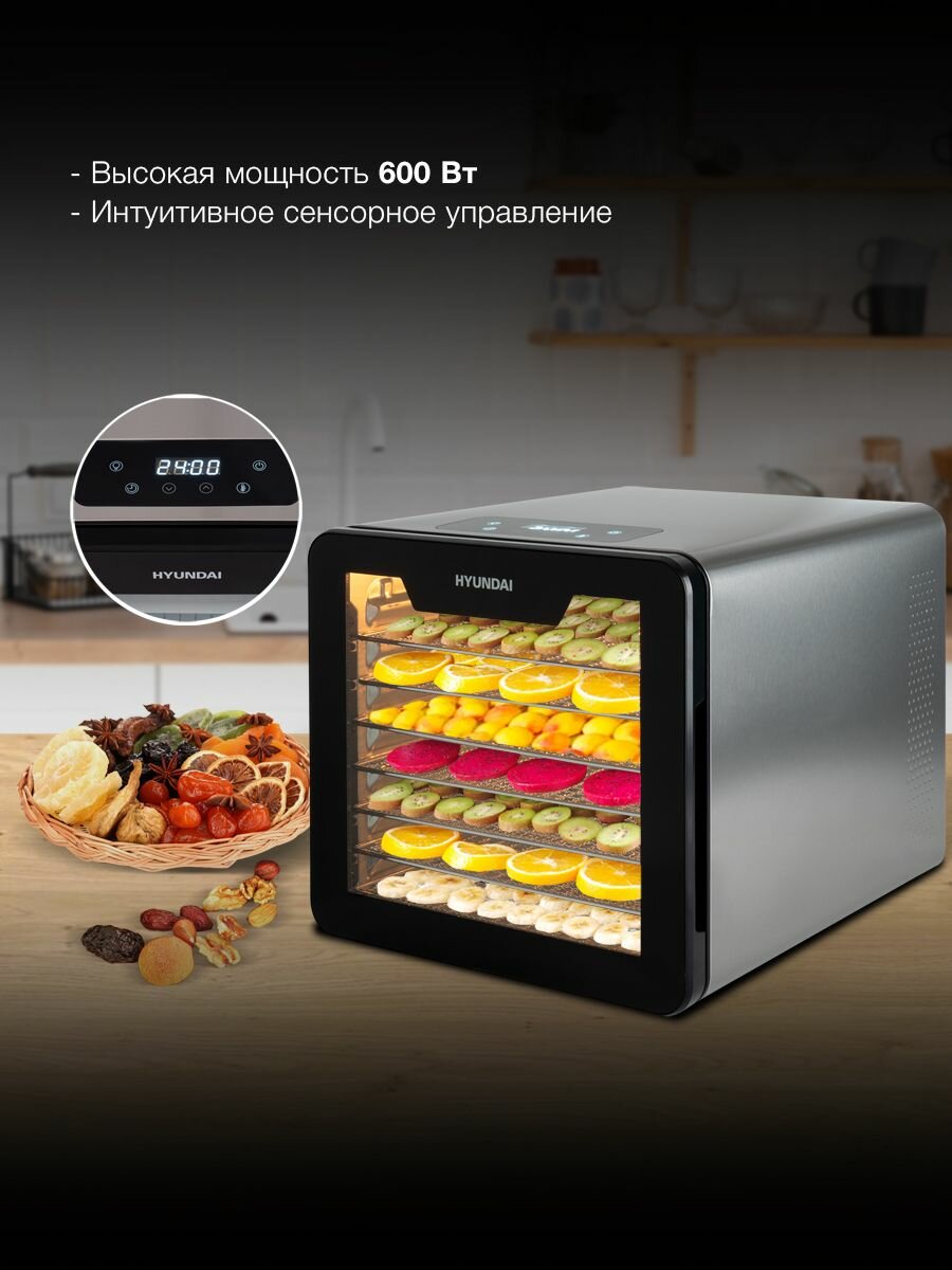 Сушилка для фруктов и овощей Hyundai HYFD-8802, серебристый-черный, 21 л, мощность 600 Вт, 14 поддонов: сравнение цен, характеристики, фото, актуальное наличие и цены.