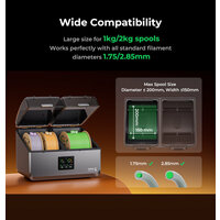 SpacePi X4 предназначен для установки стандартной катушки весом 1 кг и совместим с большинством марок и размеров расходных материалов. Независимо от того, сушите ли вы принадлежности от Creality, eSUN, Polymaker или Prusament, эта сушилка идеально вам подойдет.