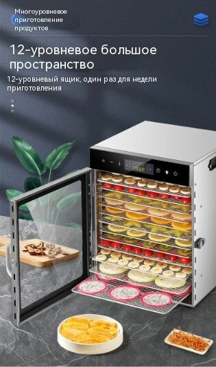 Многофункциональная интеллектуальная сушилка для пищевых продуктов, сухофруктов, овощей, закусок для домашних животных, мяса и лекарственных средств, 12 слоев: сравнение цен, характеристики, фото, актуальное наличие и цены.
