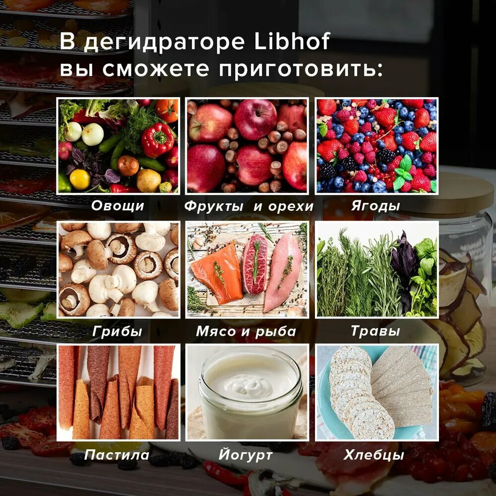 Сушилка для овощей и фруктов Libhof FDW-12 / Дегидратор на 12 поддонов, 39л, 1000 Вт / Электронное управление: сравнение цен, характеристики, фото, актуальное наличие и цены.