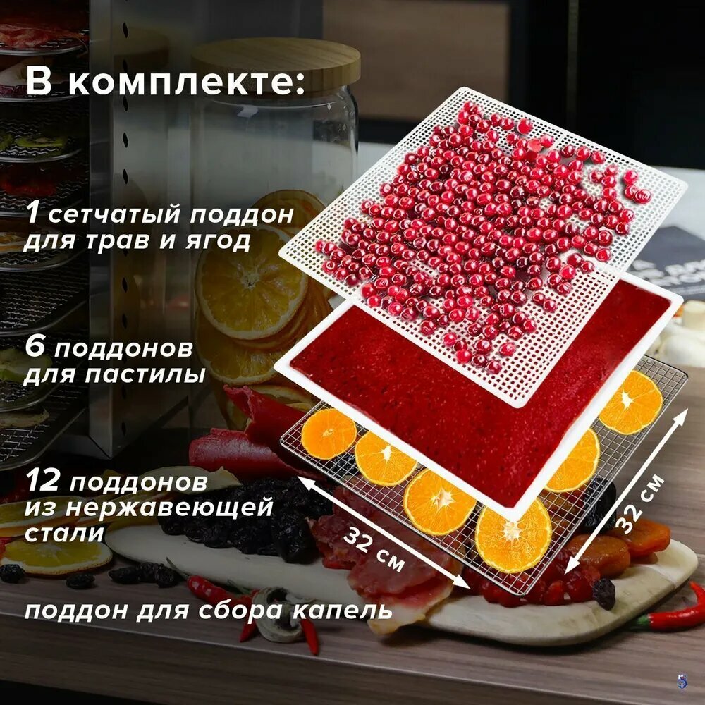 Сушилка для овощей и фруктов Libhof FDW-12 / Дегидратор на 12 поддонов, 39л, 1000 Вт / Электронное управление