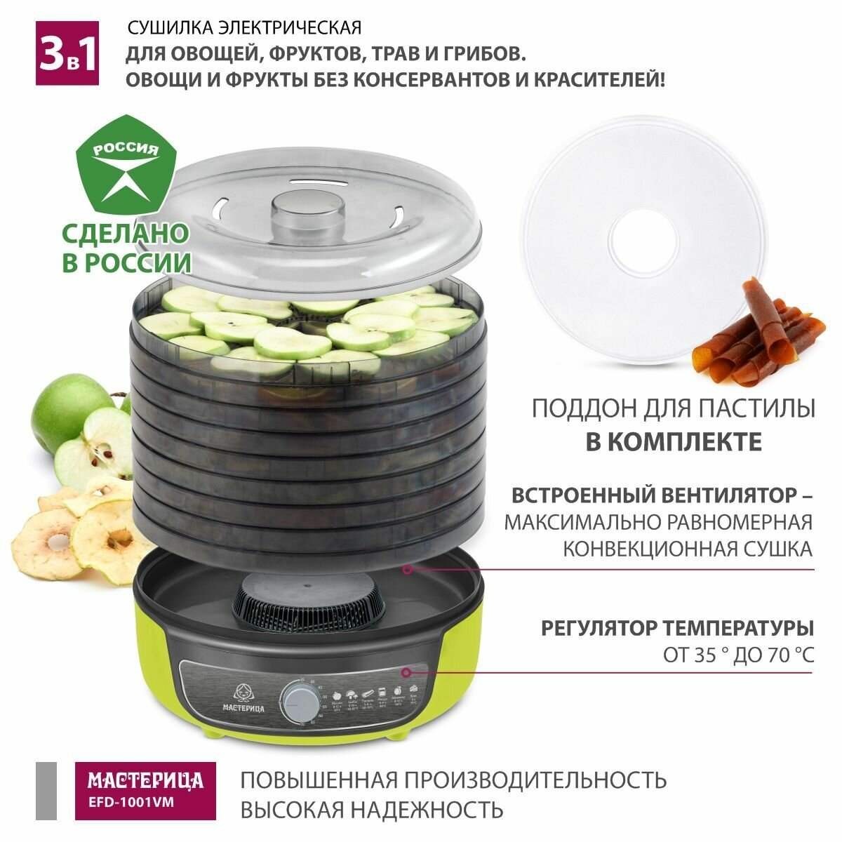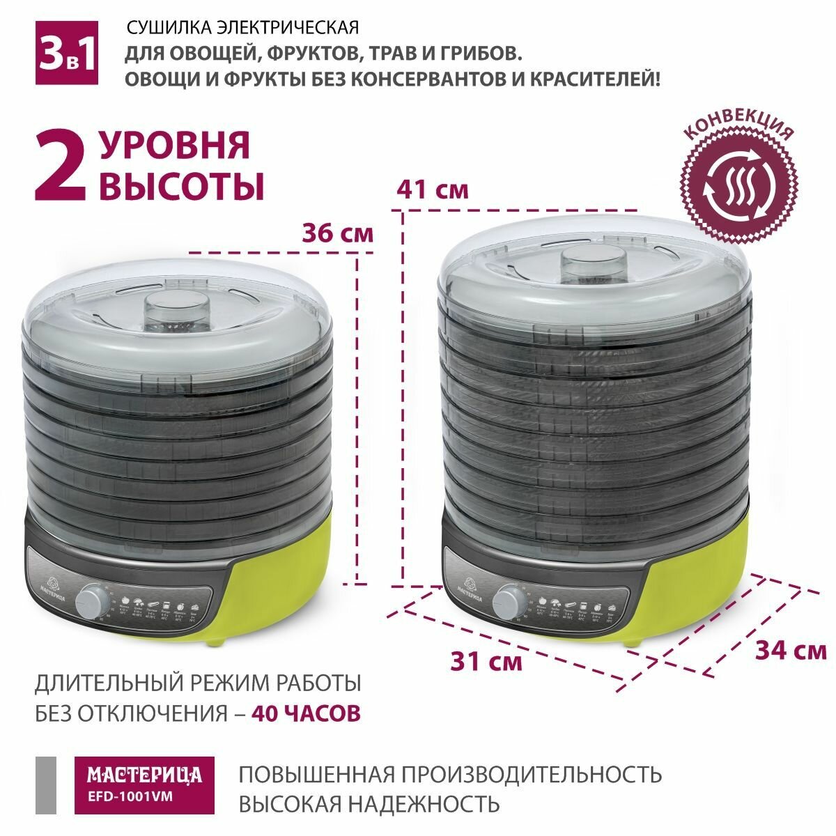 Сушилка для овощей с функциями приготовления йогурта и десертов + поддон для пастилы в подарок Мастерица EFD-1001VM оливковый с серым: сравнение цен, характеристики, фото, актуальное наличие и цены.