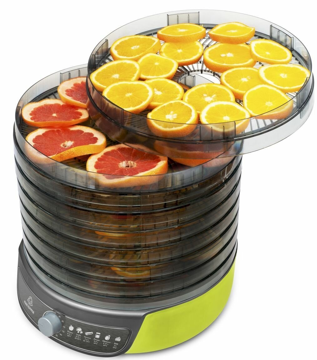 Купить Сушилка для овощей с функциями приготовления йогурта и десертов + поддон для пастилы в подарок Мастерица EFD-1001VM оливковый с серым с доставкой по всей России.