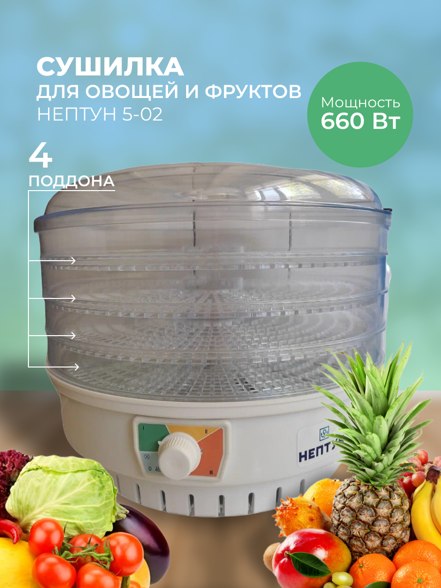 Купить Сушилка для овощей и фруктов Нептун-5-02 кажи.332219.009-02, 4 поддона с доставкой по всей России. Сушилка для овощей и фруктов Нептун-5-02 кажи.332219.009-02, 4 поддона: сравнение цен, характеристики, фото, актуальное наличие и цены.