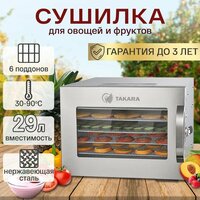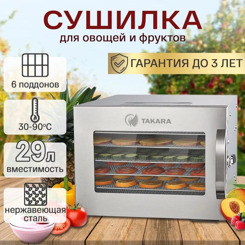Сушилка для овощей и фруктов TAKARA DF-06 из нержавеющей стали+ 6 силиконовых поддонов для пастилы: сравнение цен, характеристики, фото, актуальное наличие и цены.