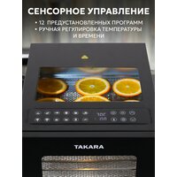 TAKARA DF-15 — это функциональный, вместительный и стильный дегидратор, который поможет сохранить продукты натуральными, вкусными и полезными. С ним можно легко готовить здоровые снеки для всей семьи и радовать близких полезными лакомствами круглый год.