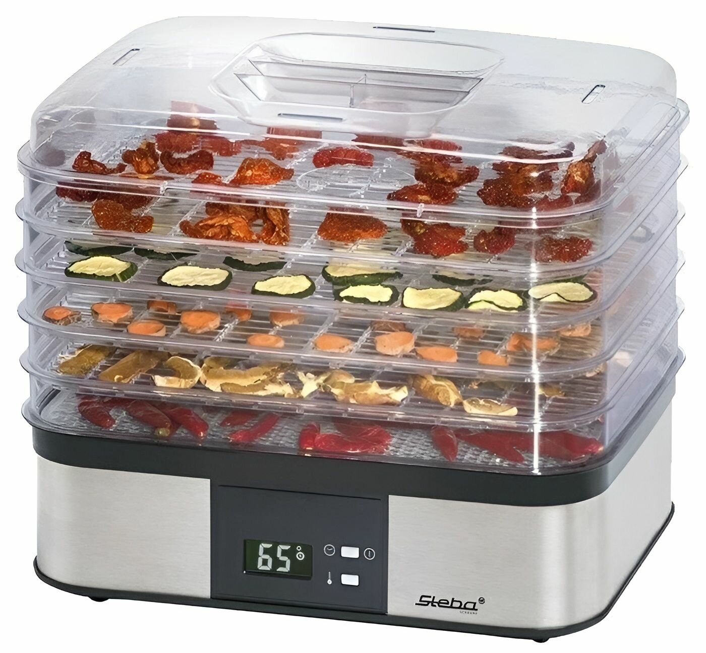 Купить Сушилка для овощей Steba ED5, 350Вт, 5 поддонов, пластик, серебристо-черная с доставкой по всей России. Сушилка для овощей Steba ED5, 350Вт, 5 поддонов, пластик, серебристо-черная: сравнение цен, характеристики, фото, актуальное наличие и цены.