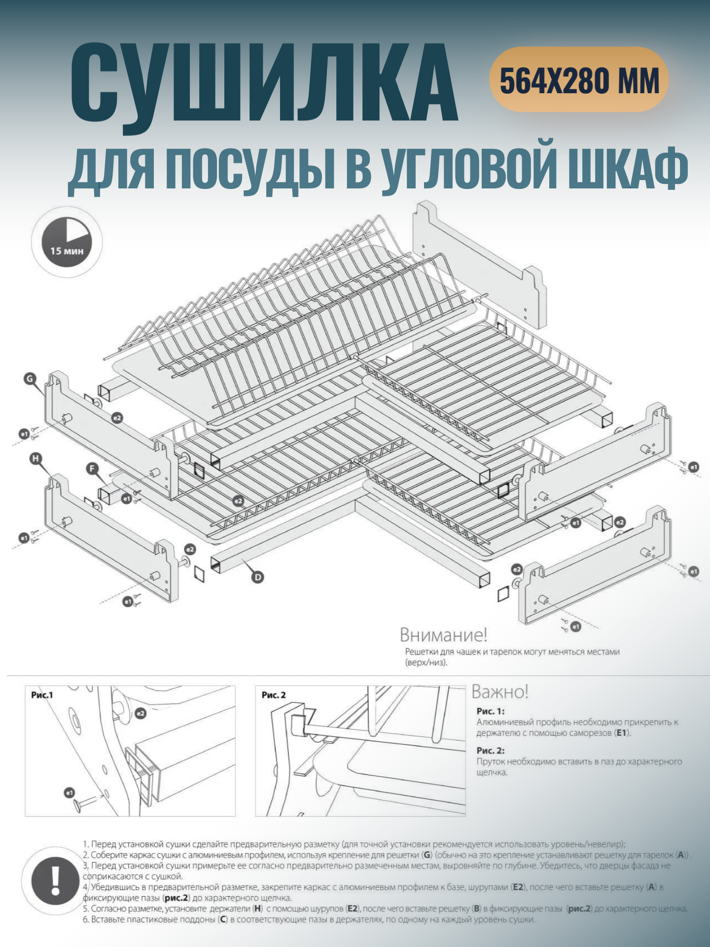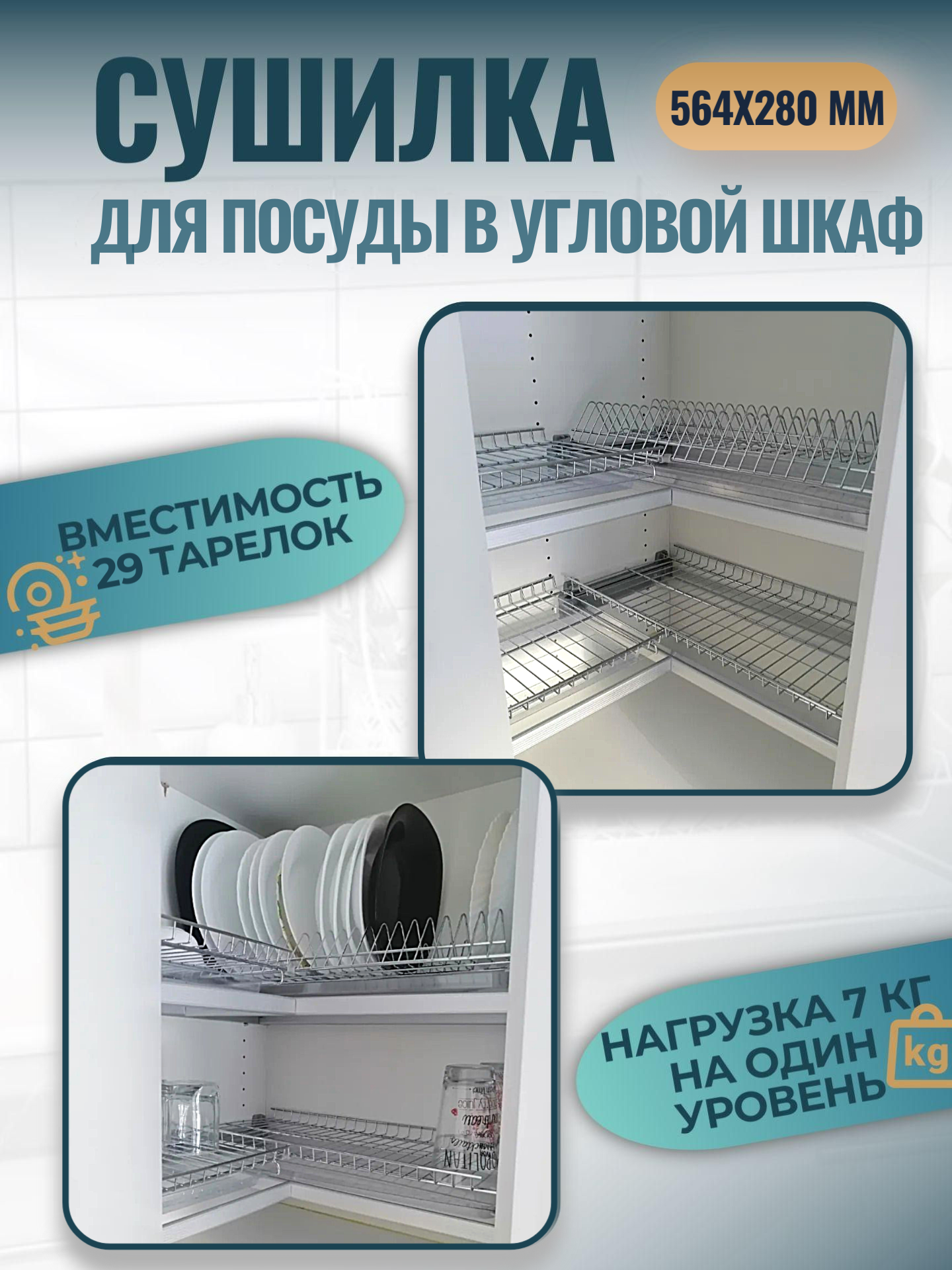 Сушилка для посуды 2-х уровневая угловая в шкаф 600х600мм, размер 564х564х280 с поддоном, хром: сравнение цен, характеристики, фото, актуальное наличие и цены.